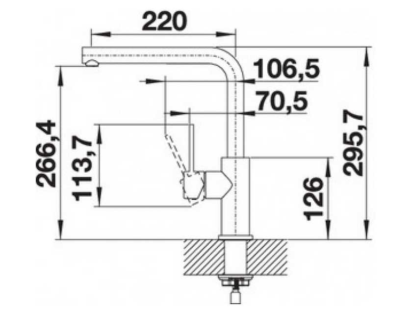 Однорычажный смеситель Blanco Lanora сочетает в себе элегантный силуэт и высокую функциональность. Боковой рычаг управления по умолчанию настроен на подачу холодной воды для экономии природных ресурсов. Высокий поворотный излив удобен для наполнения посуды с высокими бортами.
