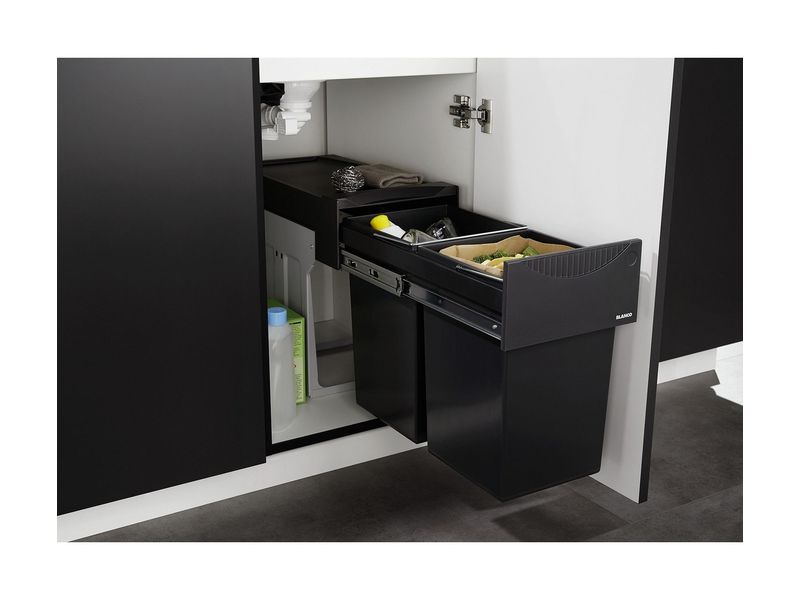 Система сортировки отходов BOTTON II 30/2 526376 предназначена для монтажа в шкаф шириной от 30 см. Монтаж производится внизу шкафа на специальные крепежные элементы и достаточно прост, даже для неспециалиста. Привлекательный дизайн обеспечивается, тем что система, в закрытом состоянии полностью скрывает содержимое контейнеров, а плавный легкий ход, даже при полной загрузке обеспечивает высококачественная арматура Blanco. Система при превосходном соотношении цена/качество обеспечивает оптимальное использование пространства кухонного шкафа, с учетом того, что верхняя крышка может использоваться в качестве полки для хранения.