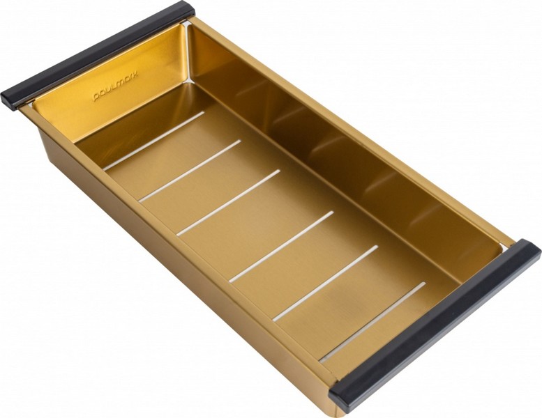 Коландер Paulmark ADVANCE A430-GM, брашированное золото изготовлен из нержавеющей стали ASIS 304, устойчиво к перепадам температур и к нагрузке. Используется для мытья и размораживания продуктов. Размер отверстий в донной части не позволит выпасть даже мелким ягодам и в то же время не препятствует свободному стоку воды.