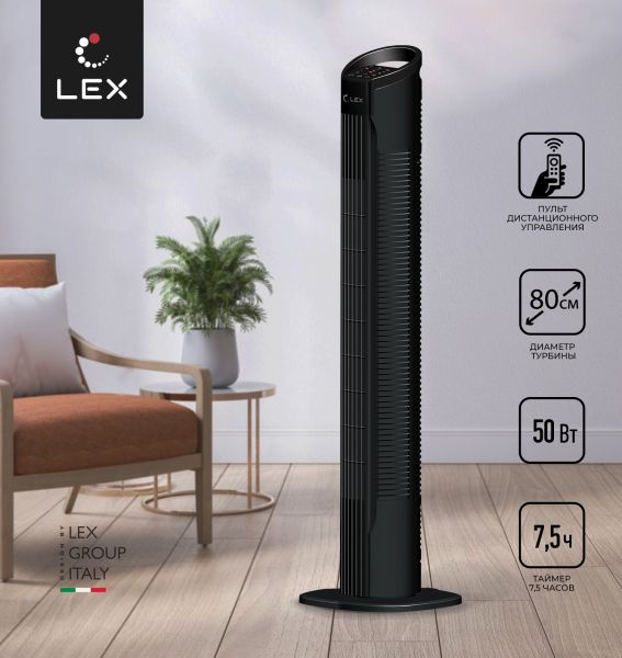 Компактный вентилятор колонного типа, высотою 80 см LXFC 8360 подойдет как для дома, офиса, так и для дачи. Удобное и простое управление с пультом ДУ, устойчивое основание, отличная мощность 50 Вт – что еще надо, чтобы насладиться прохладным ветерком в знойный день? Встроенный таймер с диапазоном от 0,5 до 7,5 часов в сочетании с 3 скоростными режимами скорости и 3 авторежимами, позволят настраивать максимально комфортные время и степень охлаждения помещений. Для более равномерного распределения воздушных потоков предусмотрен механизм поворота корпуса на 90 градусов. Если вы боитесь простудиться под кондиционером, напольный вентилятор колонного типа — лучший вариант. Для удобства переноски модель имеет встроенную ручку.