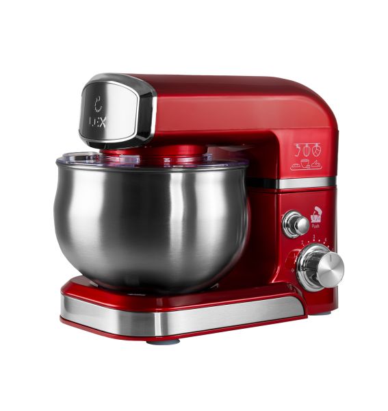 Мощность планетарного миксера LXMX 4112 — 1000Вт. Прибор имеет надежную конструкцию, оснащен встроенной защитой от перегрева и автоотключение при перегрузке, нескользящими, прорезиненными ножками, которые хорошо фиксируют его на поверхности стола. Возможности и скорости. Миксер имеет 6 скоростей. Этого более чем достаточно для выполнения любой кулинарной задачи от простого медленного перемешивания до интенсивного взбивания. В комплекте идут крюк для замеса крутого теста, венчик для взбивания и насадка-мешалка для смесей жидкой и полужидкой консистенций. В комплекте с миксером предоставляется съемная чаша на 3,5 литра из нержавеющей стали и крышка для нее. В крышке есть широкое загрузочное отверстие, которое позволяет добавлять продукты прямо во время работы миксера.
