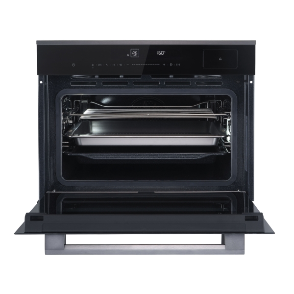 Электрический духовой шкаф c функцией пара OKB 3450 GNBX Steam KortingКомпактный духовой шкаф с функцией приготовления на пару, высота прибора 45 см, электронное сенсорное управление Full TouchControl, LЕD дисплей белого цвета Cold White, 11 режимов нагрева духовки, 4 режима с паром, включая 3 кобинированных режима; -автопрограммы, температурный щуп FoodProbe с функцией отключения, электронный таймер отключения и отложенного старта, дверца духового шкафа с двойным остеклением, система автоматического охлаждения, автоматическое отключение, Функция очистки Steam Cleaning, эмаль легкой очистки, Аксессуары: глубокий противень, хромированная решетка, перфорированный противень для приготовления на пару, цвет: черное стекло + черная нержавеющая сталь