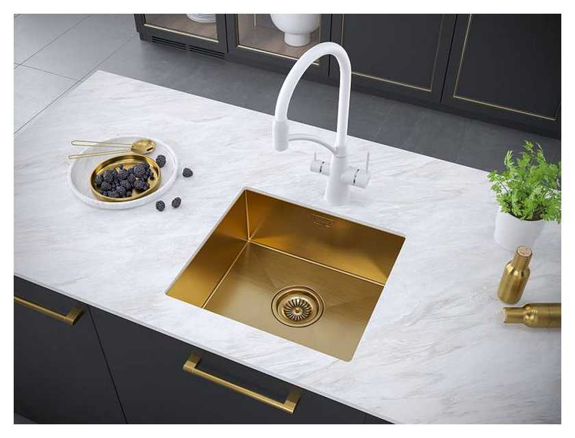 Мойки WESER в оттенках BG и GM имеют прочное PVD покрытие, которое нанесено на нержавеющую сталь. Оно особенно устойчиво к появлению царапин и истиранию, не содержит микротрещин и является экологически чистым.
